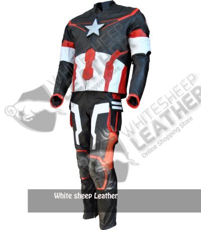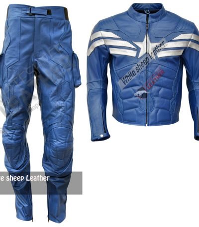 Captain America Movie Costume Real Leather Jacket/Pant Suit (Free Shipping )