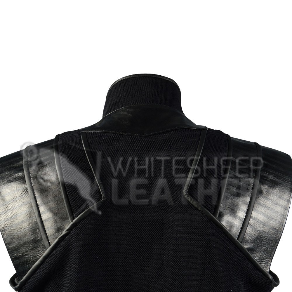 - vest is made from mix of textured stretch fabric and leather with some screen printed panels.