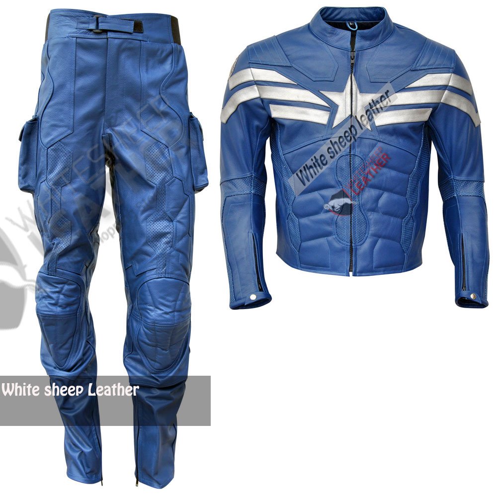 Captain America Blue Muscle Jumpsuit Real leather Costume (Free Shipping )