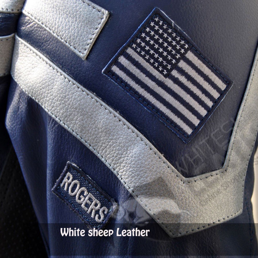 Captain America Stylish Blue Motorbike Leather Jacket