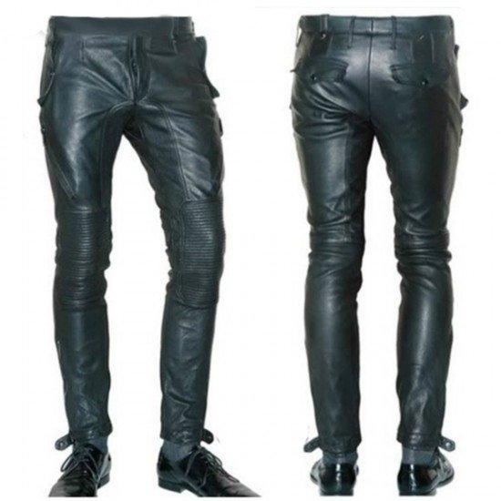 Casual Red & Black Motorbike Leather Trousers