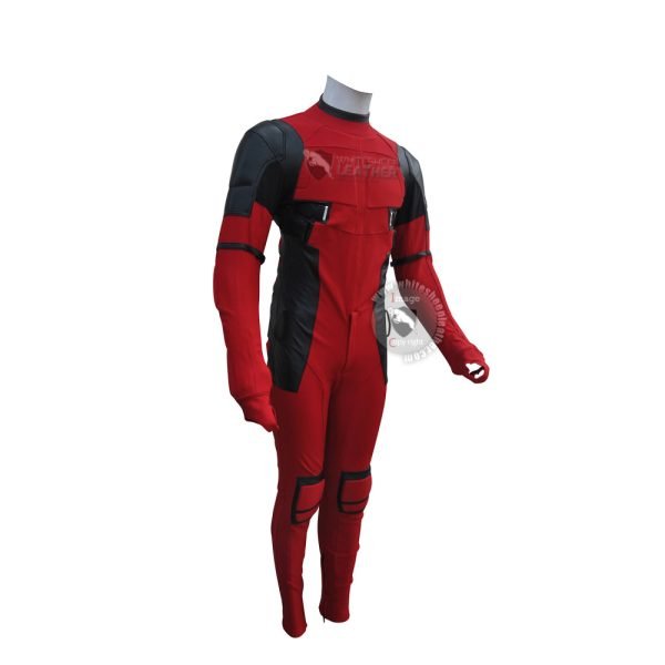 Deadpool 2 movie was out again and people embraced it with love and affection . it has got lot of appreciation . we have made this deadpool 2 movie suit in one piece style with red texture and black real leather .