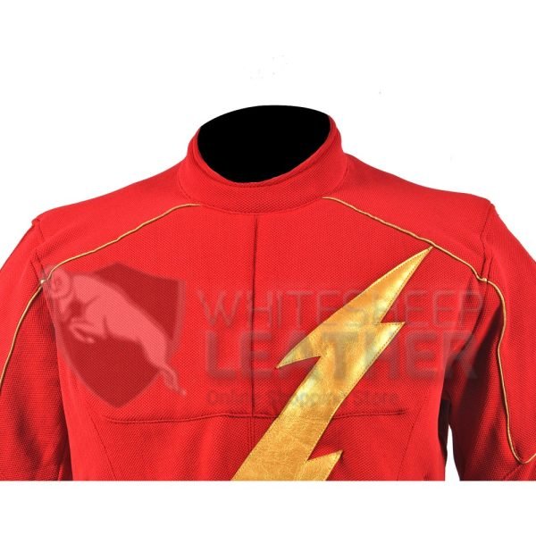 - Material : Red Textured stretch fabric and Gold leather used to make the suit