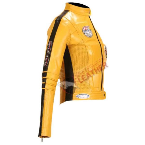 Lovers of Kill Bill Movie would be pleased and surprised by this great replica of the same jacket. Now you can make this great jacket a part of your wardrobe’s unique collections. The jacket has been equipped with YKK zipper closure on front and perforated panels on both sides of jacket. It has inner polyester lining and for your essentials there is a pocket inside the jacket. It has YKK zipper on cuffs and it features snap buttoned fastening over neck. A buttoned fastening has also been placed on bottom of jacket. Extra long size of sleeves makes the jacket highly attractive and provides comfort.