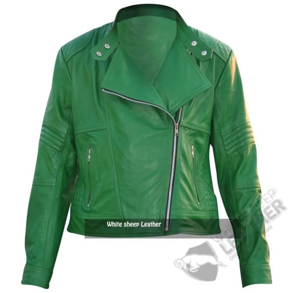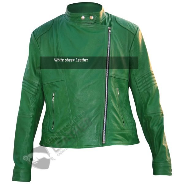 Are you looking for a jacket that comes with unique color and design? If your answer is yes then you are at right place here. This attractive green jacket has been crafted with great stitching and details. It has been manufactured by our experts with the help of high quality real cowhide leather. The jacket’s front has been equipped with original YKK zipper closure with slight curve towards heart side on left shoulder. It has additional buttons stylishly placed on bane collar. It has multi-pocket front for easy access and essentials. Along with that, inside pockets are also added to give you more room for your valuables.