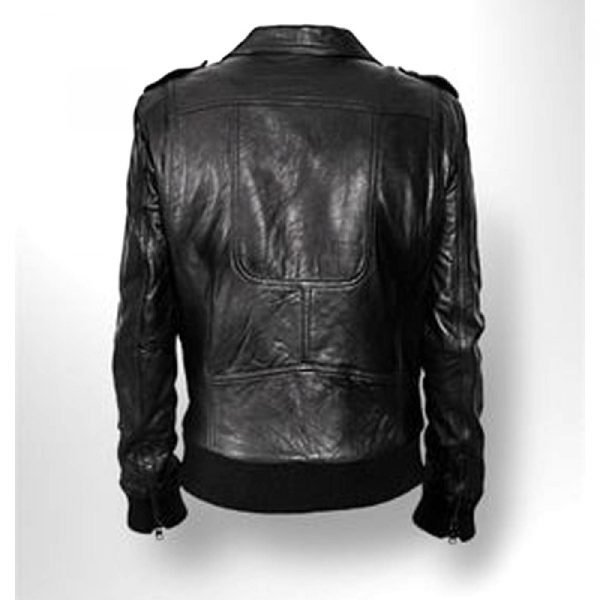 The men’s black bomber styled leather jacket has been manufactured by our expert designers for those who want to have an attractive and modern addition to their wardrobe’s collection. The jacket has been designed with great details and high quality stitching and has inner polyester lining as well. The jacket features the basic bomber style and has lapel collar with decorative cuts and buttons. It also has shoulder epaulets to create enhanced attraction in design. The jacket has two asymmetric pockets, one on chest front at heart and the other one on waist side front. The jacket also features waist belt with buckle.