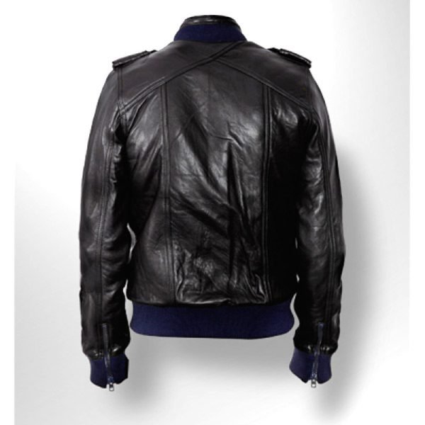 Men Designer Black Bomber Leather Jacket