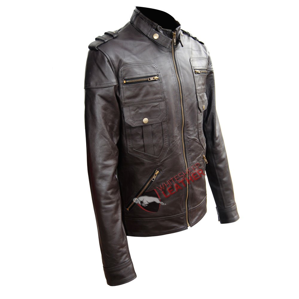 Men’s Brown Six Pocket Slim Fit Leather Jacket