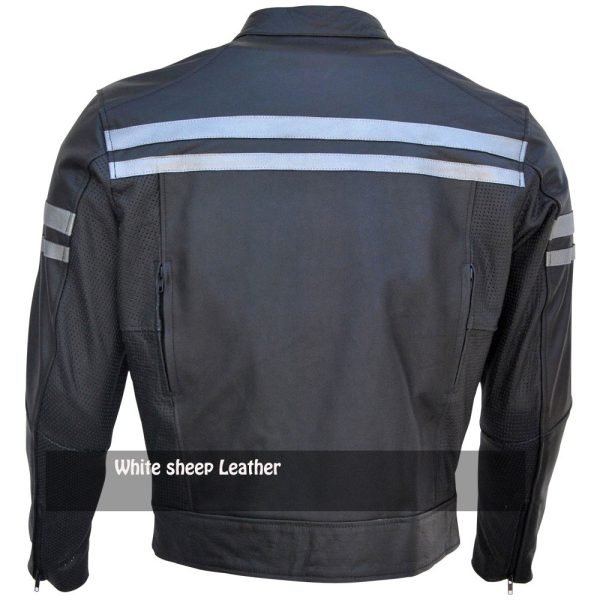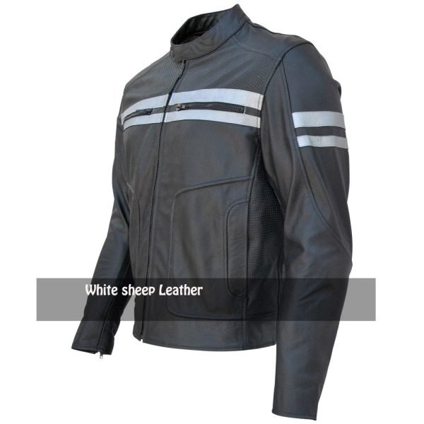 Men’s Classic Stripe Motorbike Leather Jacket