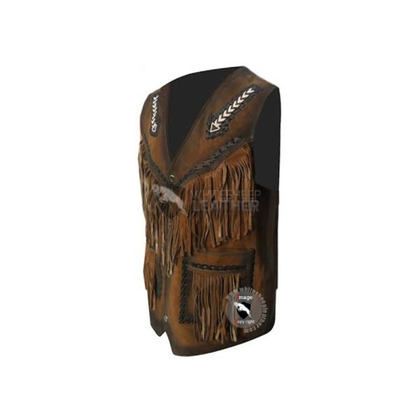 Mens Bread Fringe Western Leather vest Jacket ( Free Shipping )