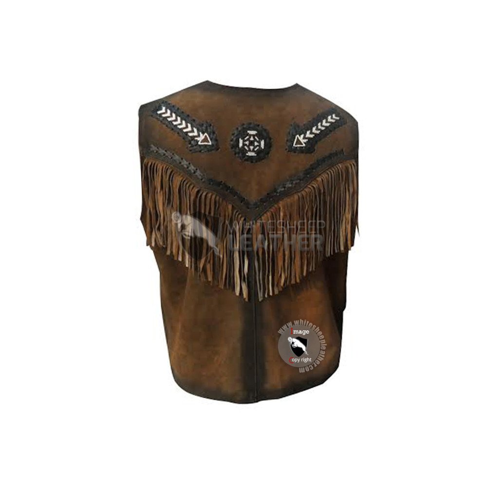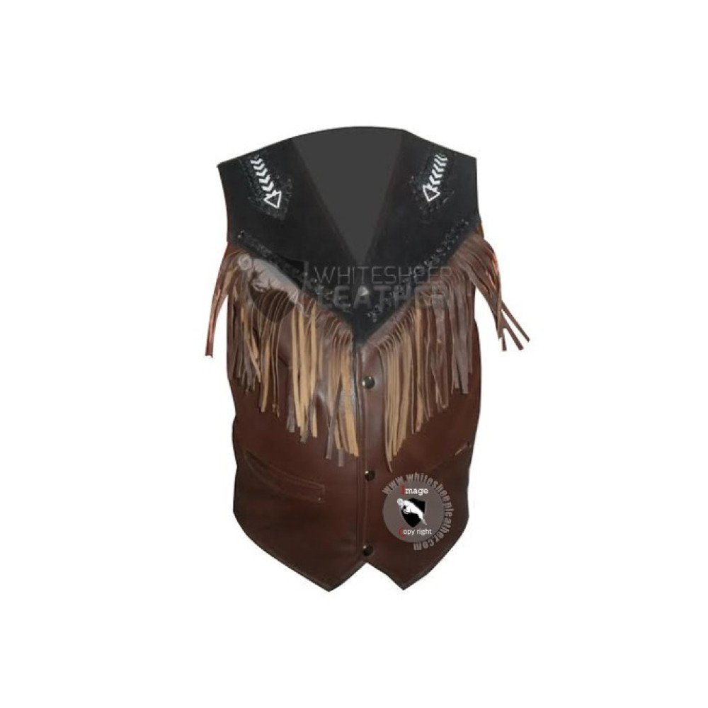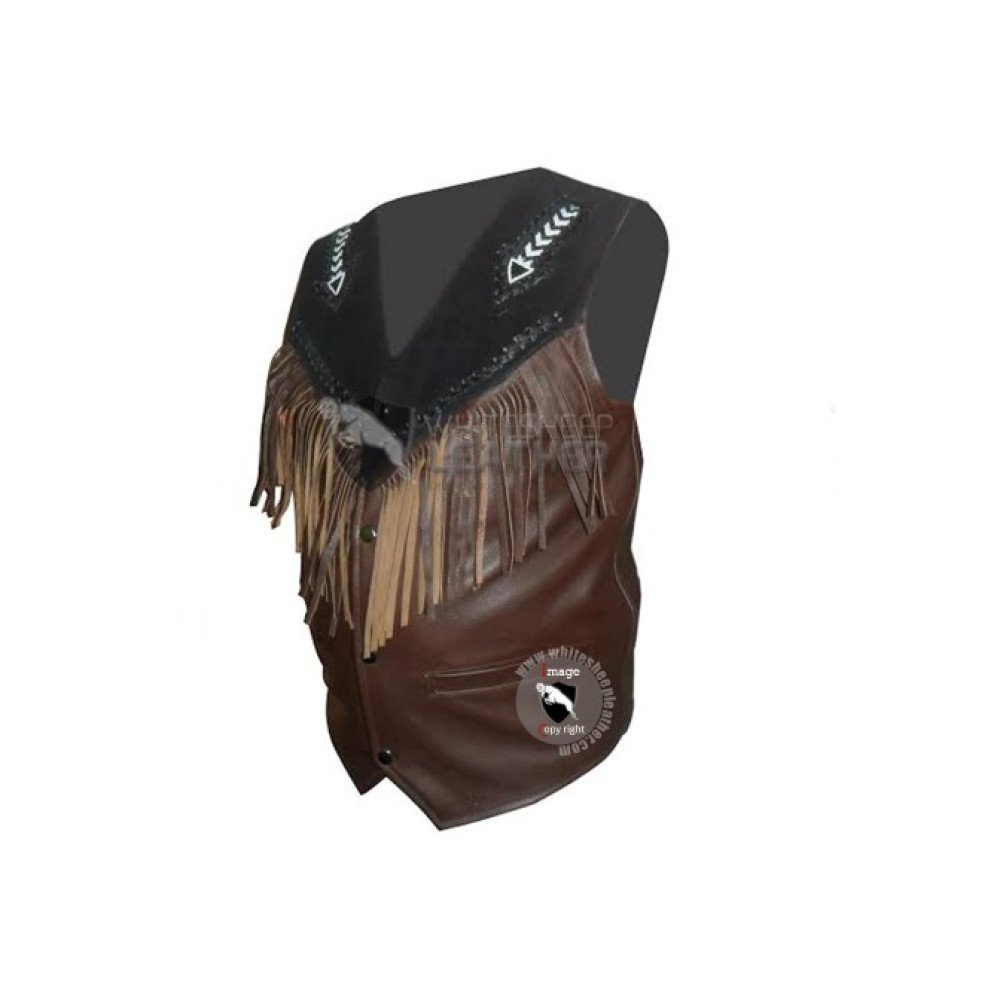 Mens Bread Fringe Western Leather vest Jacket ( Free Shipping )