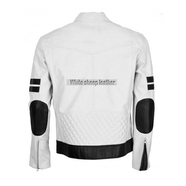 This Men’s White/Black Stripe Biker Leather Jacket is absolutely very unique and a great selection. This jacket has a very unique appearance and will make you locate out. This jacket is white in color giving it a very classic touch with great elegance. Wearing this elegantly designed leather jacket you will make a remarkable fashion statement without having to do anything else. This jacket is meant for all those of you who would want to look good without having to do much. The look of the jacket is very clean and the stripes make it very interesting and stylish. It is the importance of the jacket is the fact that it is manufactured using pure leather.