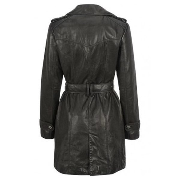 Women Black Belted Leather Coat