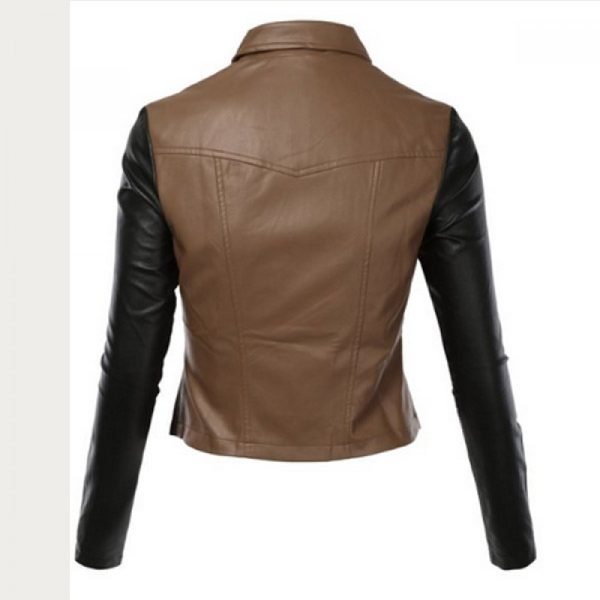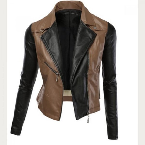 Young girls and middle aged office going ladies tend to be generally dissatisfied with ordinary black colored jackets. Now their search is over because we have brought this stylish and uniquely designed leather jacket with its unique black and brown color combination. The jacket’s important aspects include its design and color that cater those women who want to wear a formal type of outerwear for their formal occasions. It has been equipped with shirt style collar and value added by two shoulder flaps over each shoulder. The jacket has one zipped pocket on front and features an asymmetric styled zipper closure on front.